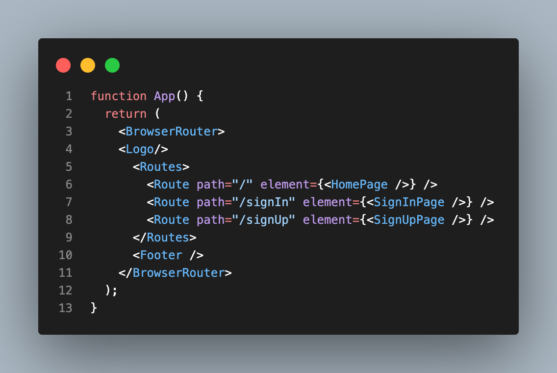그러니까, <Logo>와 <Footer>는 바뀌지 않고, <Routes>로 감싸진 부분만 바뀌는거였어요.
