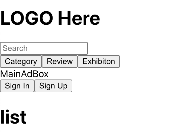 제가 하고싶은 것은 Category/Review/Exhibition 버튼을 눌렀을 때, 페이지를 바꾸지 않고 버튼 하단의 내용들을 교체하는거에요.