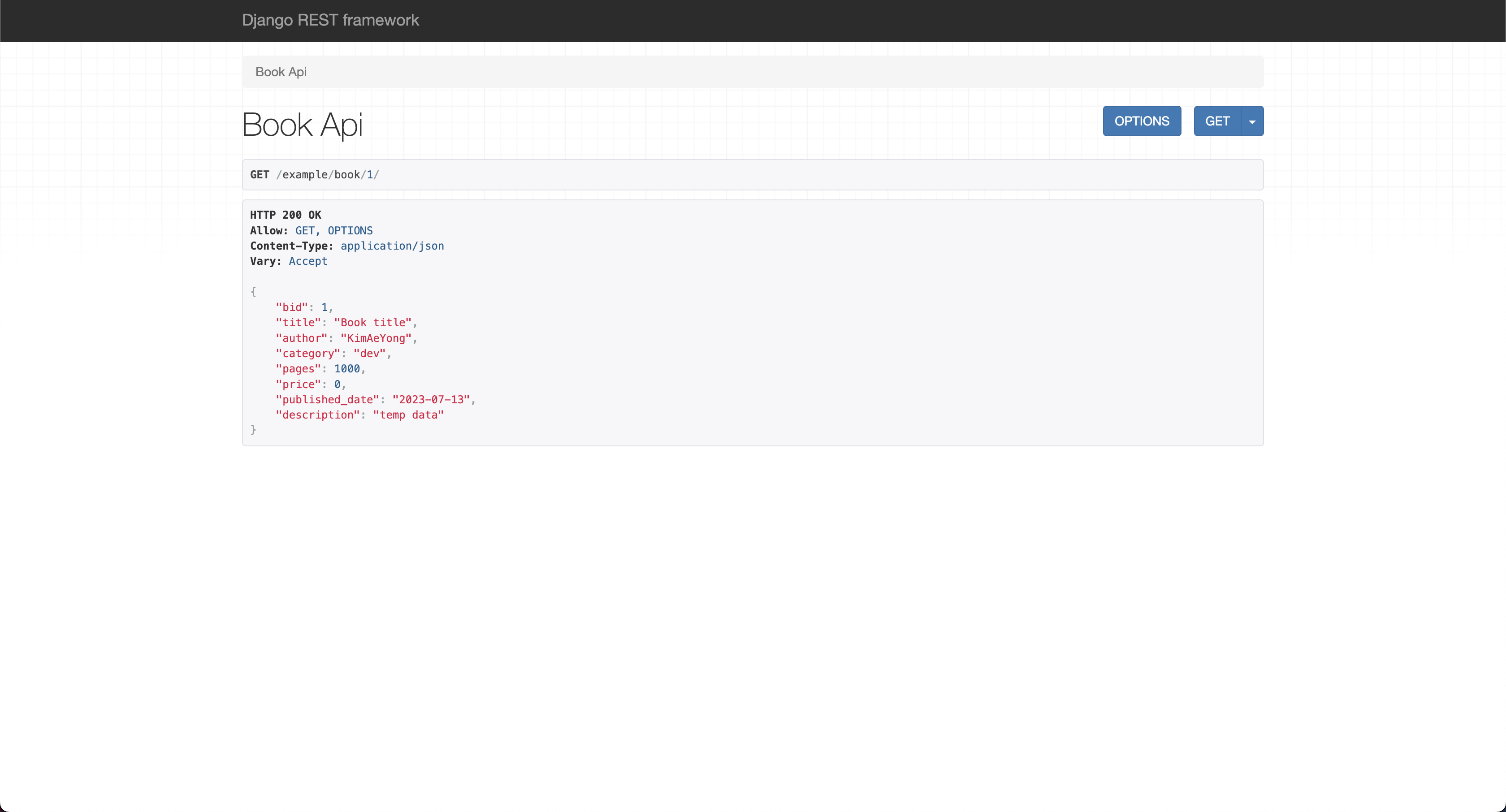- API(GET/book/1/): bid에 해당하는 도서의 정보 return