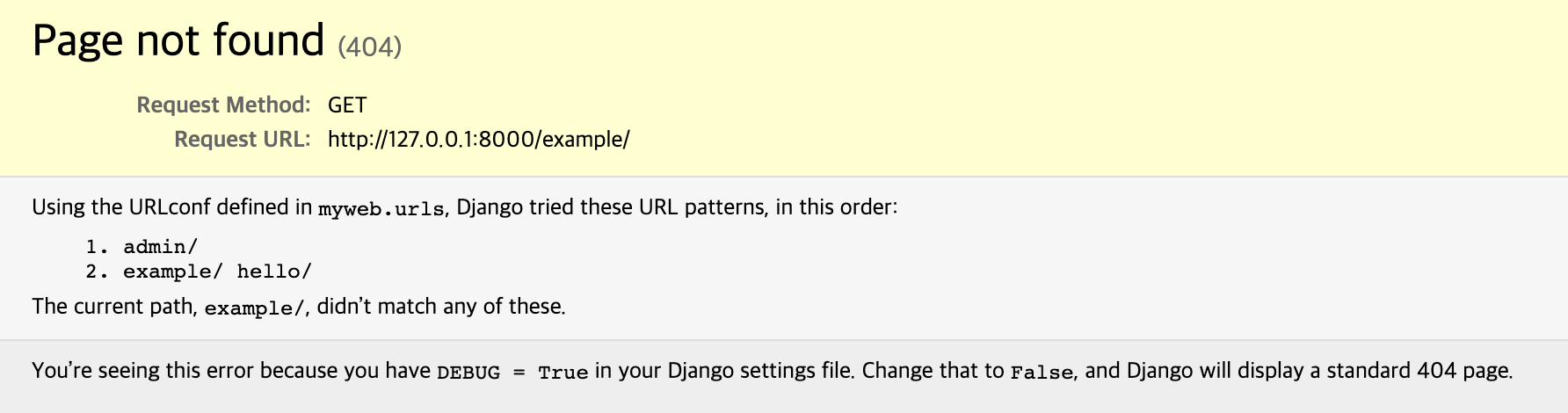 exaple/hello/ 를 통해서 접속하라고 한다. 다시 해보자.
