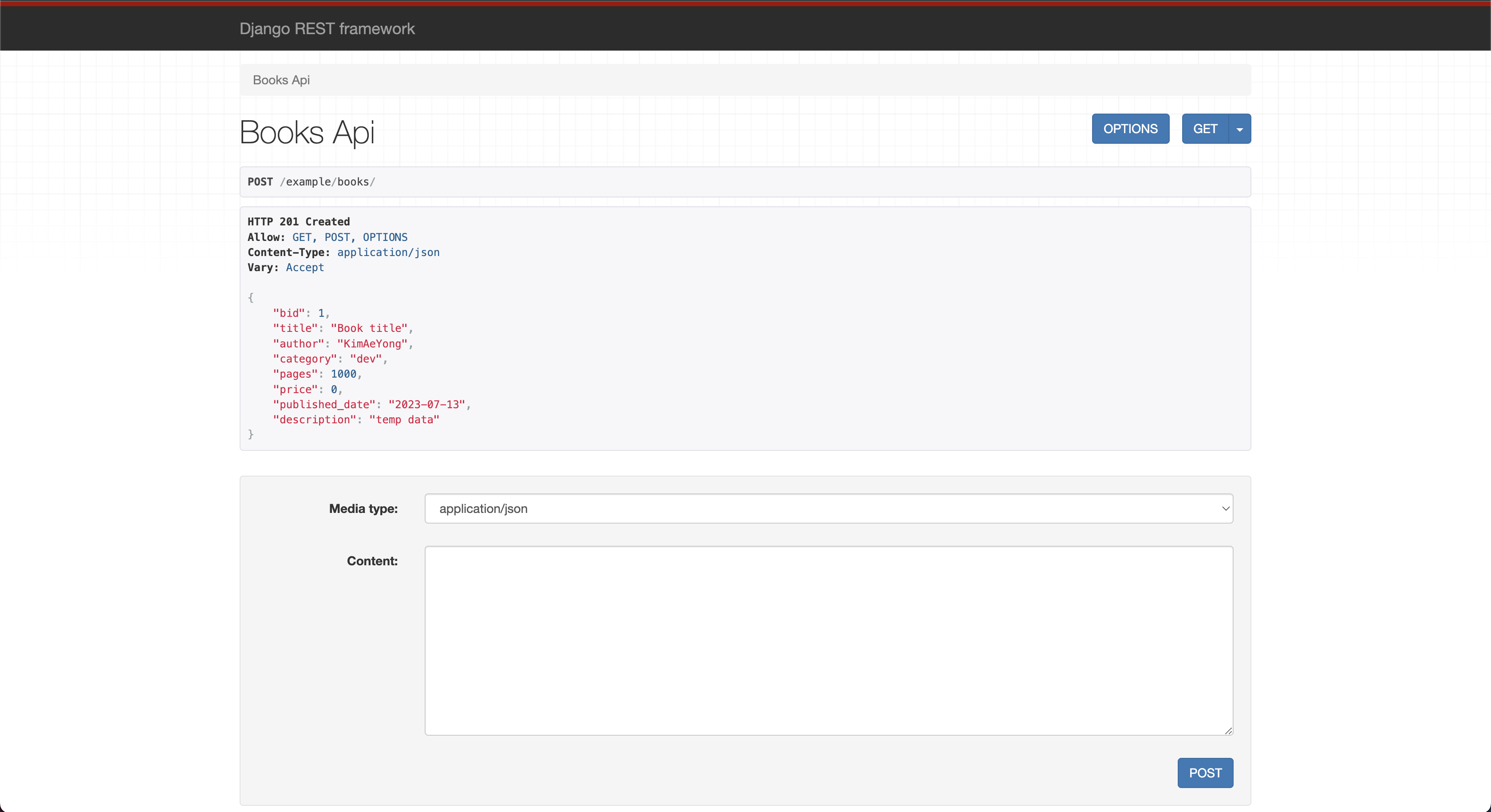 이런식으로 DRF의 기본 페이지로 API 테스트를 할 수도 있지만,