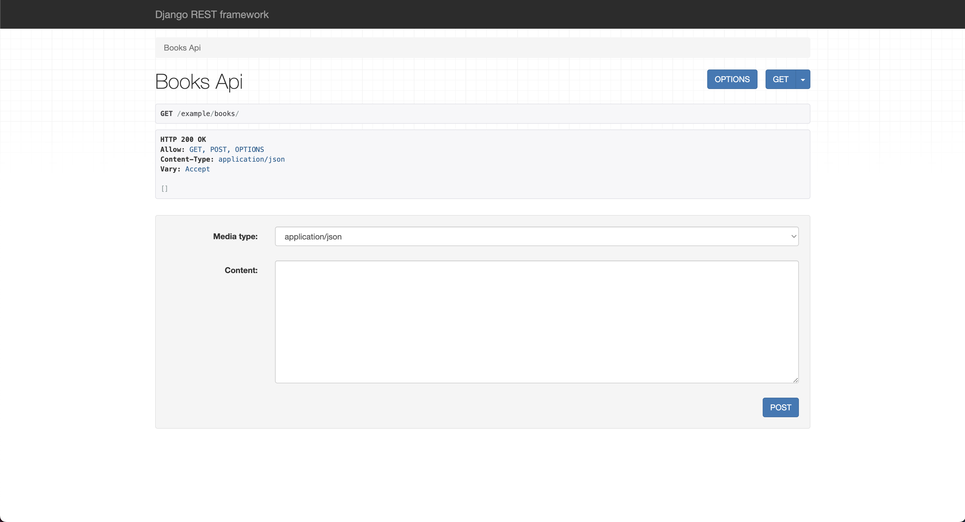 .../example/books/로 접속하면 다음과 같은 화면이 나온다.