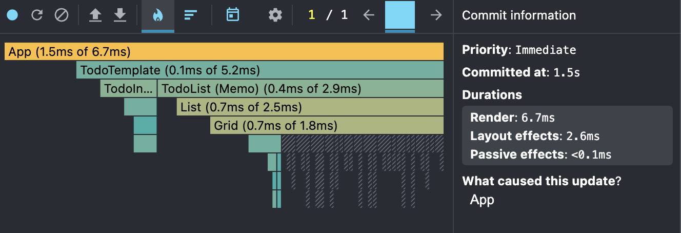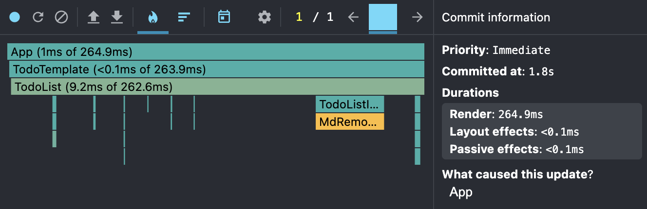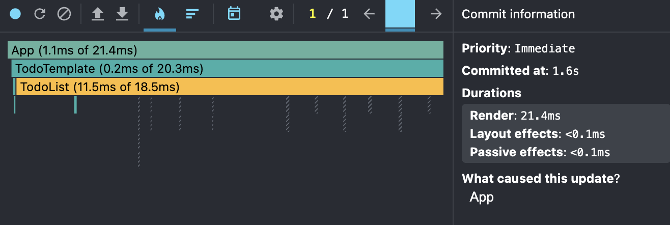 이 시간을 측정하기 위해 React dev tools를 사용합니다.