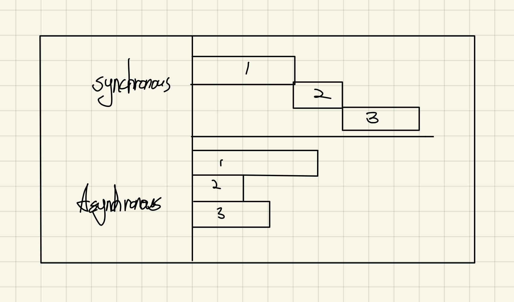 동기적(Synchronous)이란 것은 위의 그림처럼 순서대로 작업이 이루어지고요.