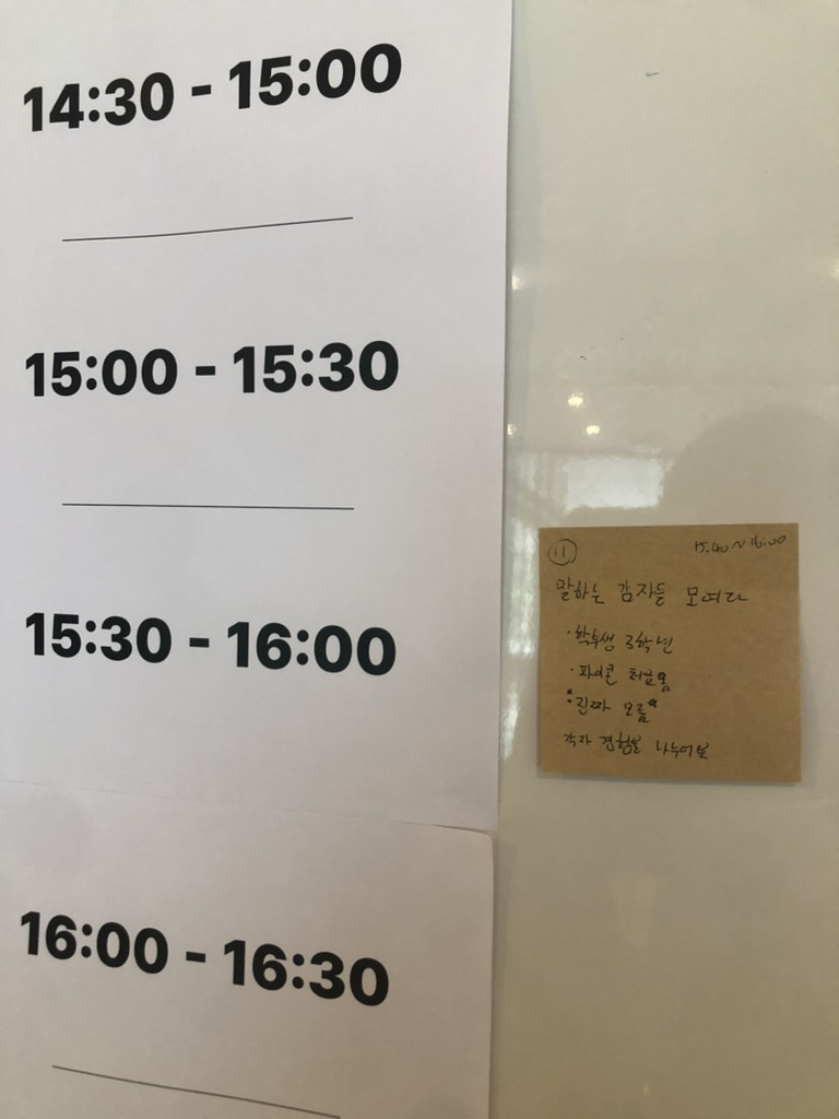 나도 하나 붙여봤는데, 딱 한분 오셔서 개발 문화에 대해 이야기를 잠시 나누었다.
