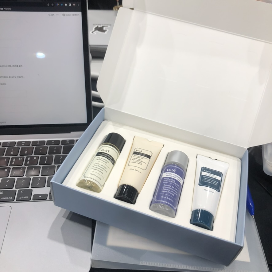 해커톤에도 기업 부스가 왔는데, 화장품 샘플 세트와 뚜껑달린 캔 사이다를 받았다.