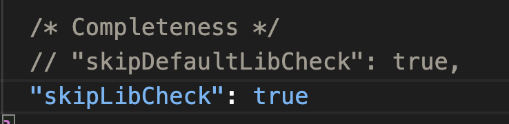 skipLibCheck는 라이브러리의 타입 정의 파일에 대한 타입체크를 생략할지에 대한 설정이다.