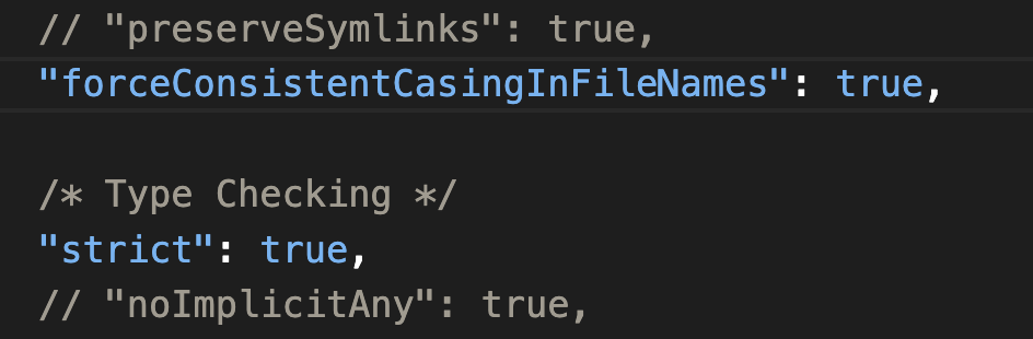 forceConsistentCasingInFileNames는 import 시 대소문자 구분을 확실하게 하는 것을 말한다.