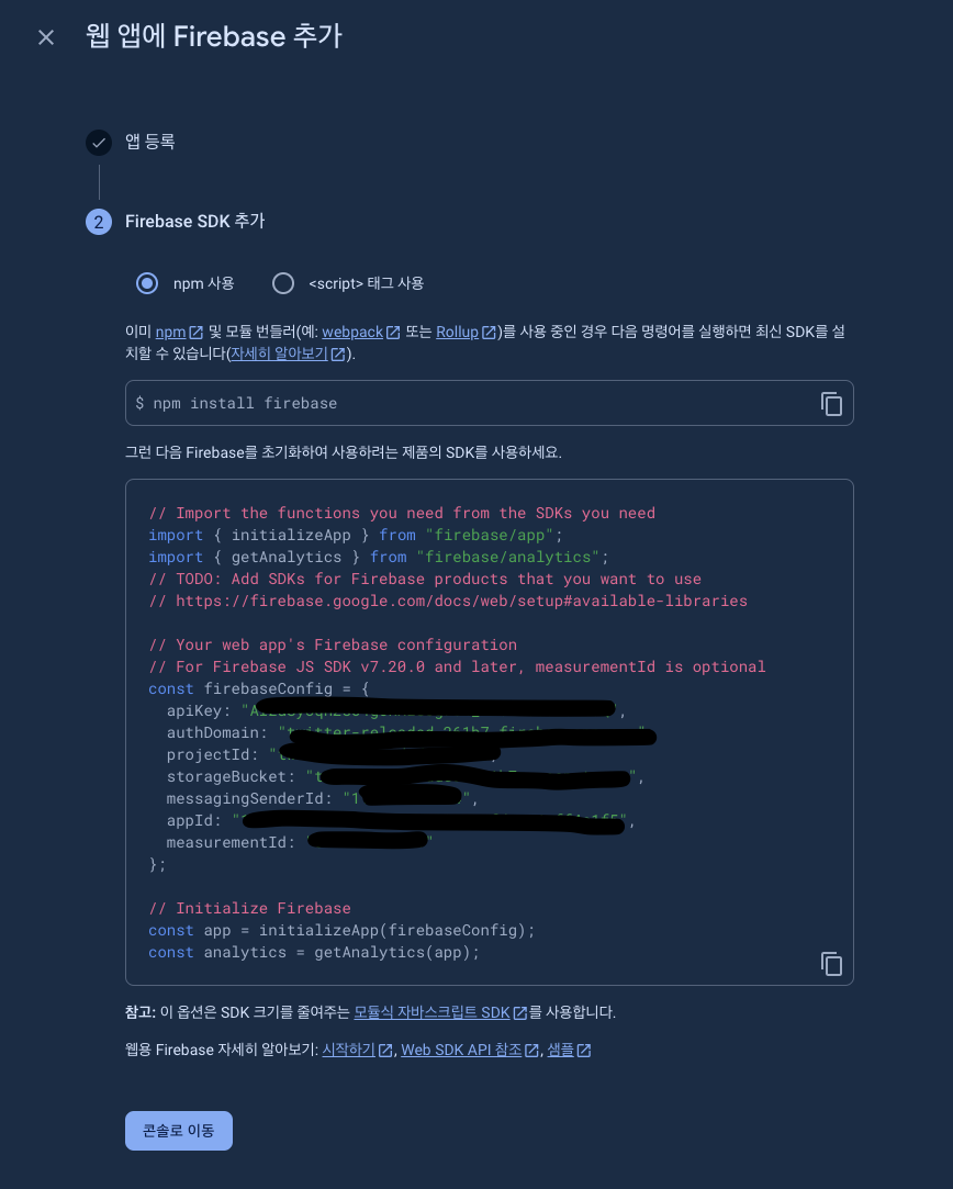 이렇게 해서 firebase와 react 프로젝트의 연동이 되었고, 다음 포스팅에서는 인증을 위한 작업들을 해보자!