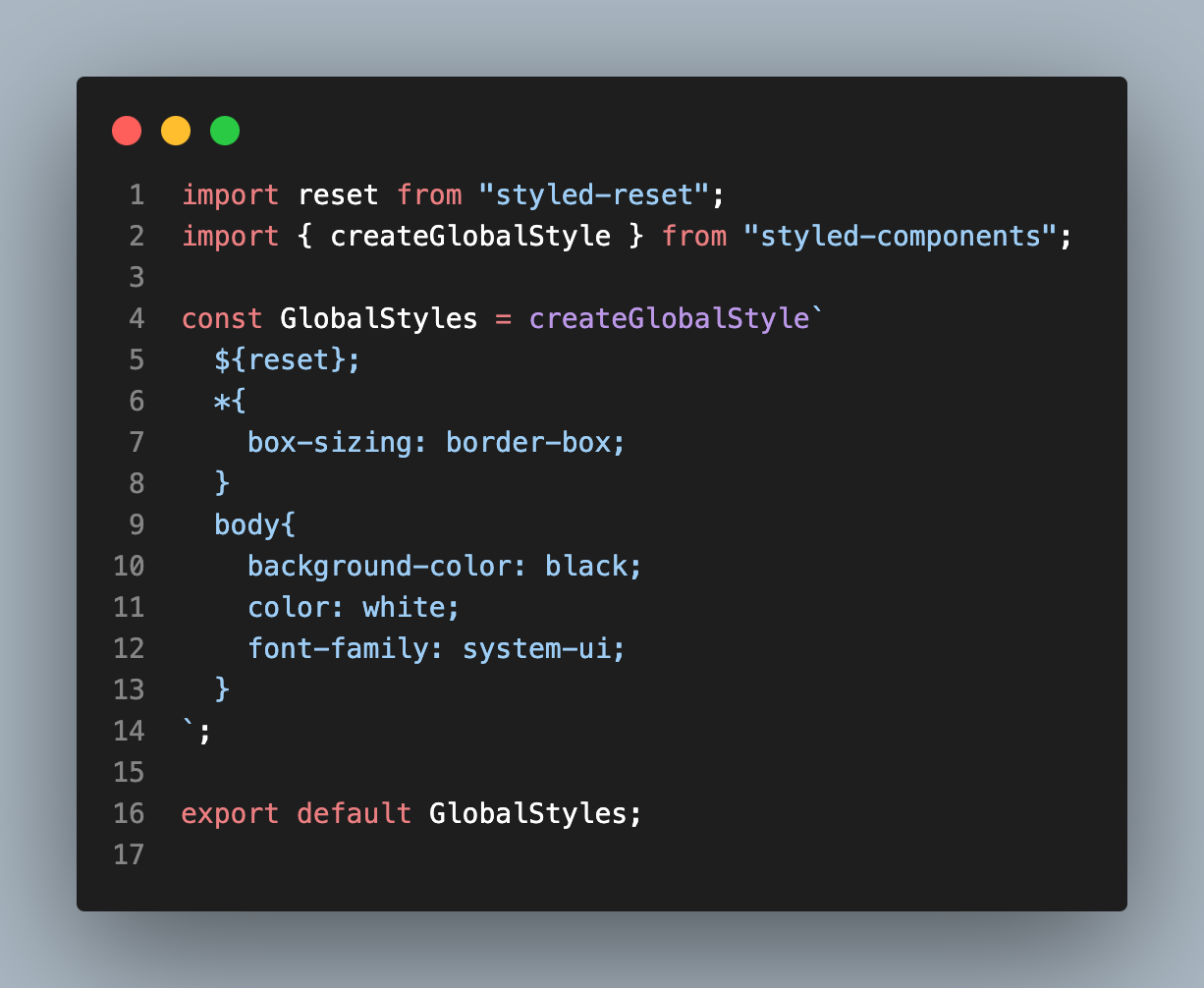 styled-reset에서 reset을 import해서 스타일을 초기화해준다.